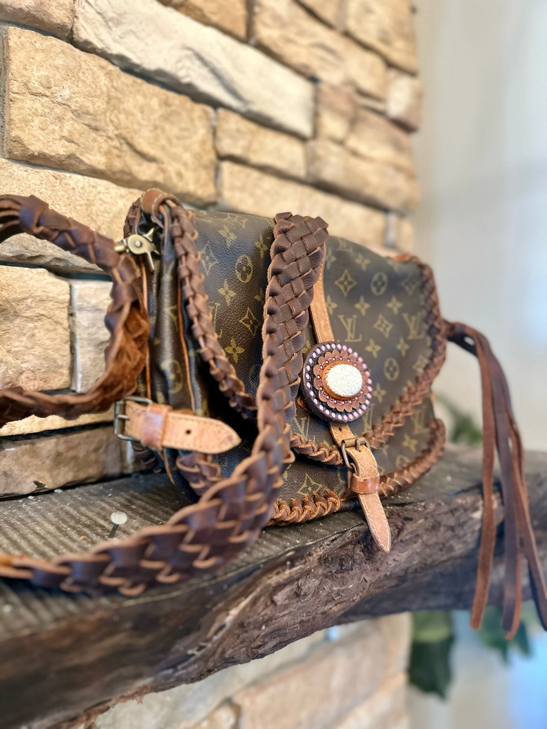 The Double Sided Satchel Small has exactly what you think, a flap on the front and back of the bag. The small size (30) is about 11x8x4. Each flap has two pockets inside and has a buckle closure. Front and back are braided. Strap is average crossbody length.